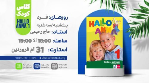 کلاس آموزش زبان آلمانی به کودکان – Hallo Anna 1 یکشنبه سه شنبه ها ساعت 18 الی 19 14 جلسه استاد ناهید حاج رحیمی استارت از 31 فروردین